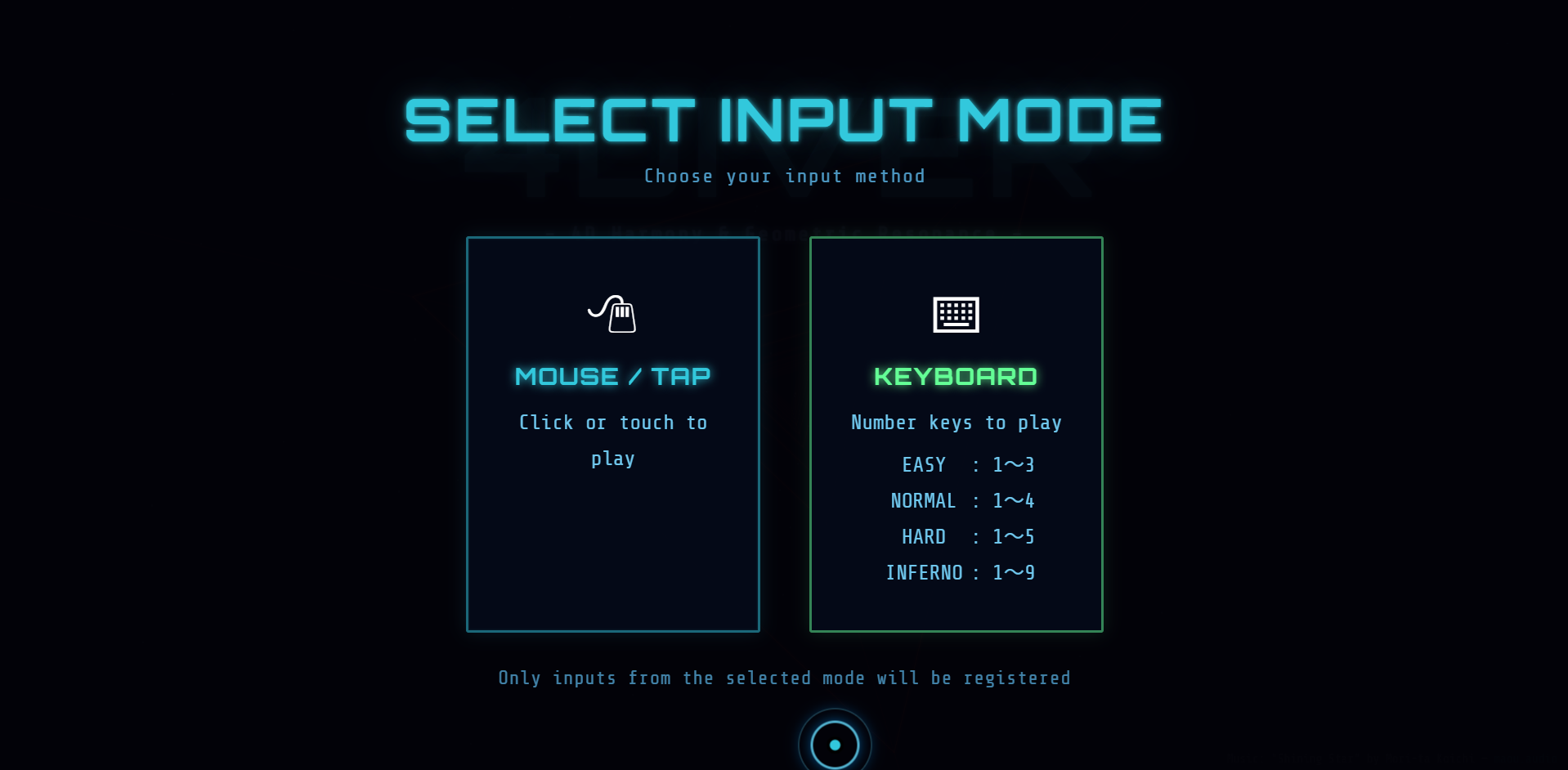 Keyboard : number keys (1–3 / 1–4 / 1–5 / 1–9 by difficulty)