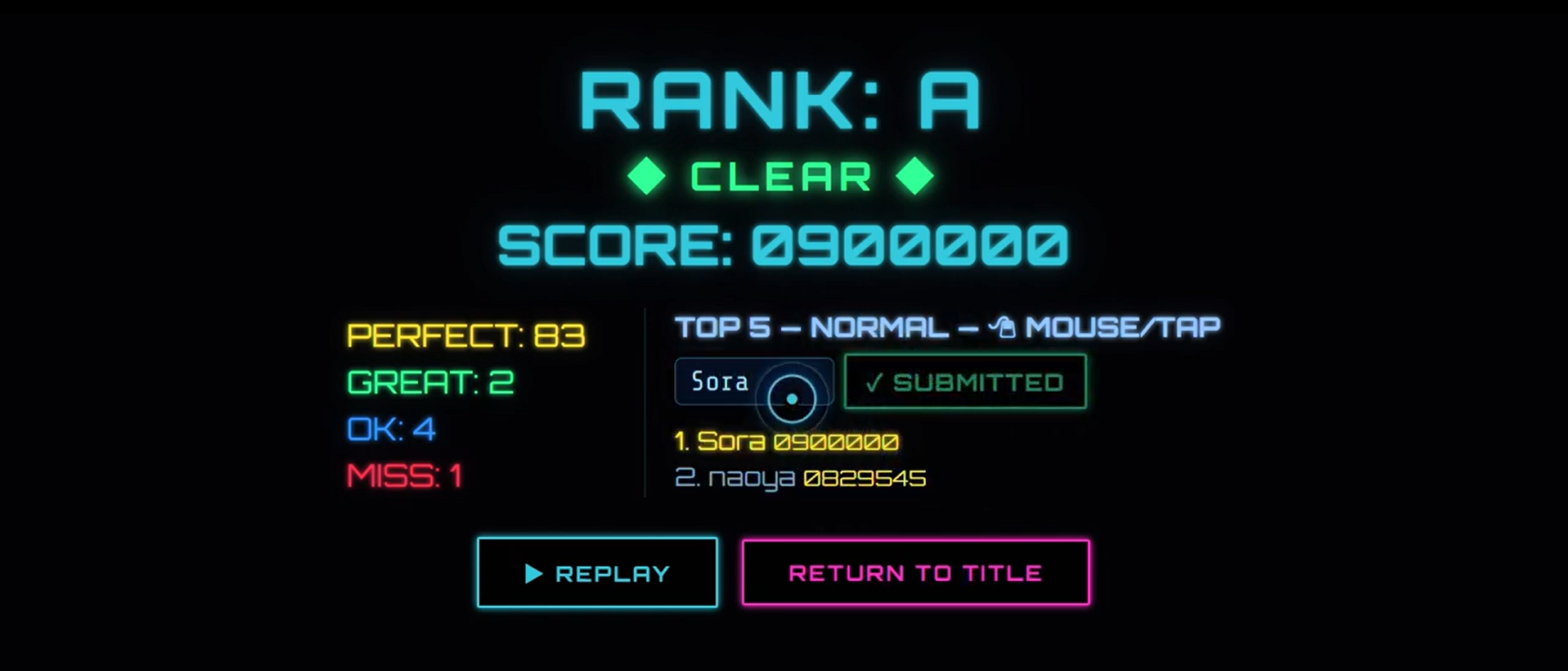 Rankings are tracked per song, difficulty, and input mode.